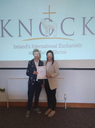 Sr Anna Byrne presented Nicola Mitchell of Knock Shrine with the Awareness Award from Eco Congregation Ireland.