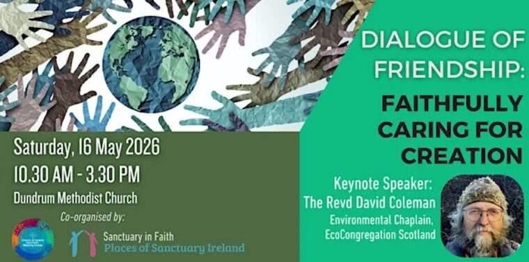 The keynote speaker will be the Revd David Coleman, Environmental Chaplain for Eco-Congregation Scotland. This is the fourth ‘Dialogue of Friendship’ event, organised as a collaboration between the Church of Ireland Interfaith Working Group and the Places of Sanctuary Ireland Sanctuary in Faith Stream.